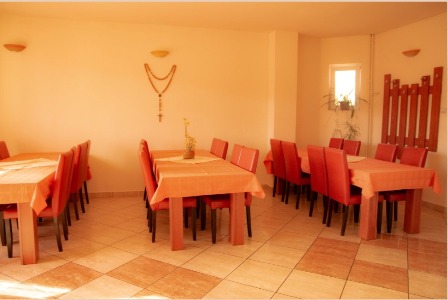 La parterul pensiunii va punem la dispozitie o sala d emese complet utilata, cu frigider, aragaz, cuptor electric si cu microunde, aparat de cafea cu filtru si preso italian pentru mocha, fierbator de apa, vesela si tacamuri. Cafeluta de dimineata e din partea casei.